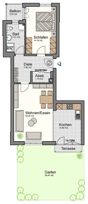 Diese helle 2‑Zimmer‑Wohnung befindet sich in zweiter Bautiefe an der Stiegstraße in Rankweil.